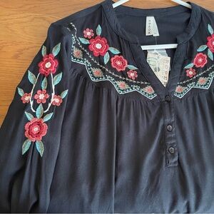 Black with multicolor floral embroidery