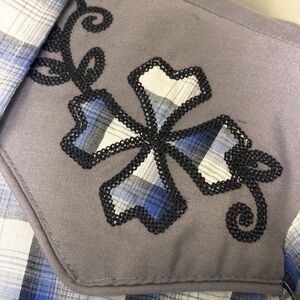 Roper Embroidered Western Top Women Size Medium Blue Plaid Pearl Snap