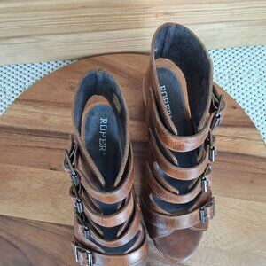 Roper Fashion Shoes Women's 10 Milo Leather Brown Buckle Bootie Sandal Brown