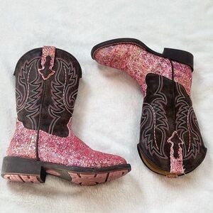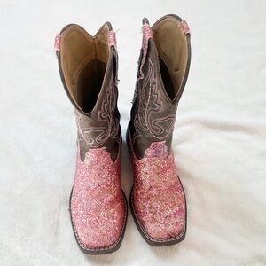 Roper Girls Southwestern Western Square Toe Pink Glitter Slip On Boots Size 12