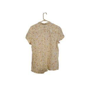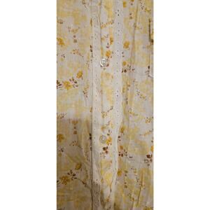 Size xl in pretty yellows,creams and beige. Two front buttoned pockets . Shoulder to hem 26 in. Armpit to armpit 21 in. 100% cotton