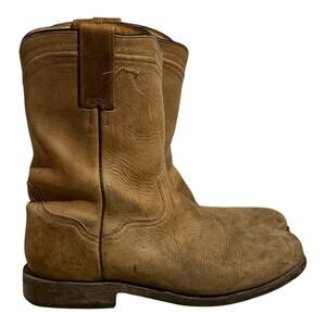 Roper Letaher Cowboy Boots Men's Size 8.5 D Tan Distressed Western Pull On Rodeo
