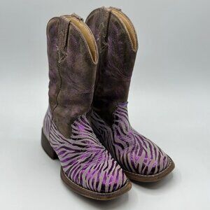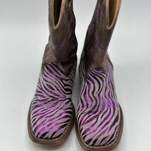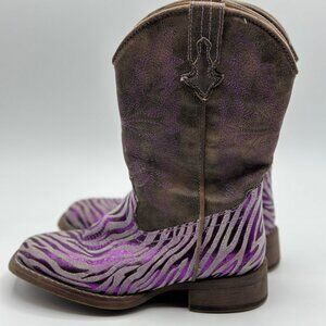 Roper Little Girl's Western Purple Metallic Zebra Square Toe Toddler Boots Sz 12