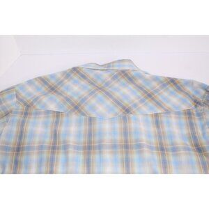 Roper Men's Cowboy Shirt L Blue Tan Plaid Western Pearl Snap Casual Fit Relaxed