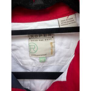 Roper Mens Medium Pearl Snap Flag Shirt Western Cowboy Red White Blue equestrian