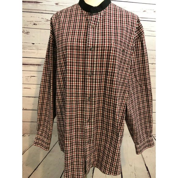 Roper Mens Plaid long sleeve check shirt size XL Extra Large. 100% Cotton Button front with one front pocket. Pit to pit 26", back bottom of collar to bottom of shirt 33.5", pit to end of sleeve 20", shoulder to end of sleeve 24". Made in Macau. Machine washable. Great preowned condition with no rips or stains.