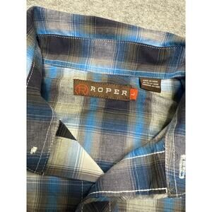 Roper Mens Shirt L Blue Plaid Pearl Snap Western Multicolored Cowboy 100% Cotton