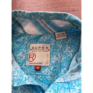 Roper Men's Shirt Western Button Down Blue White Medium Long Sleeve Cowboy