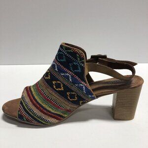 Vibrant Roper sandals with a multicolor pattern. Features a chunky heel and adjustable strap. Perfect for casual wear.