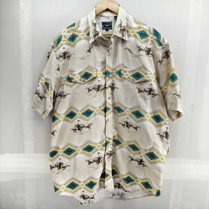 Roper Pearl Snap Aztec Southwestern Cowboy Cattle Stampede AOP Mens XL Shirt EUC