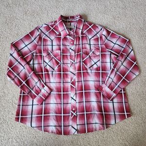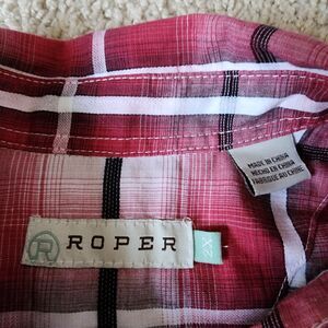 Roper Pearl Snap Shirt Womens 2X Pink Red Black Plaid Western Cowboy Equestrain