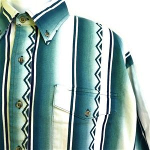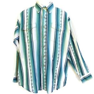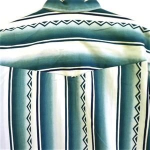 Roper Rodeo Blue Shirt Western Button Down Texas Aztec Peaked Yoke Flap XL Turq