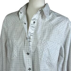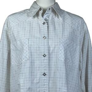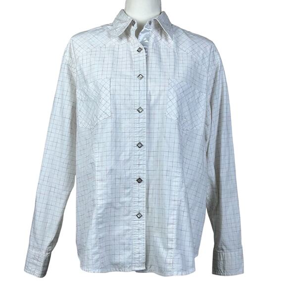 Roper Shirt Women Size 1X White Long Sleeve Faceted Snaps Color Checks Western