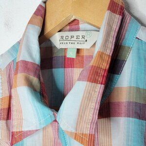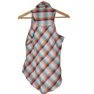 Roper Small Blue Plaid Sleeveless Women's Button Down Hi-Low Western Top S