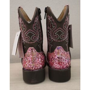 Roper Toddler Girls Sz 5 Glitter Aztec Pink/Brown Faux Leather Cowboy Boots