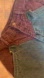 Stylish two-tone denim jeans with a unique design. Features a combination of blue and brown colors.