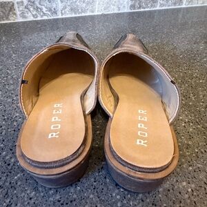 Roper WORN ONCE Women's Beth Glittered Tooled Inlay Mules in COGNAC. Women 7.