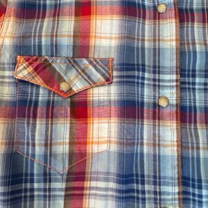 Authentic Roper “Wear the West” plaid western shirt in bold red, blue, and white. Classic western styling with modern comfort.