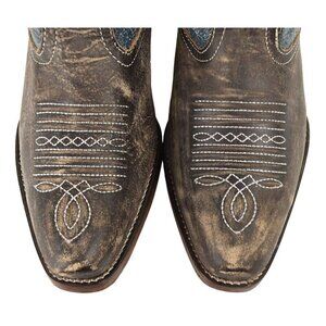 Roper Women's Brown American Flag Distressed Leather Western Ankle Boots Size 6