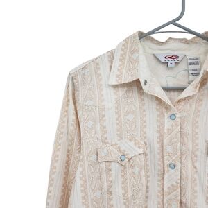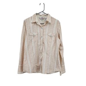 Roper Women's Cotton Western Printed Stripes Button Front Pocket Shirt - M
