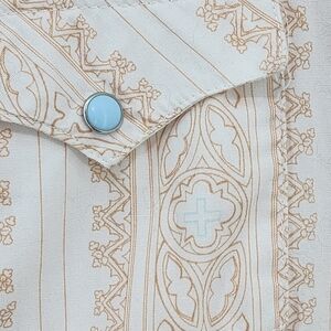 Women's Cotton Printed Stripes Button Front Pocket Shirt from Roper in White/Tan.