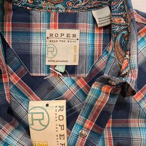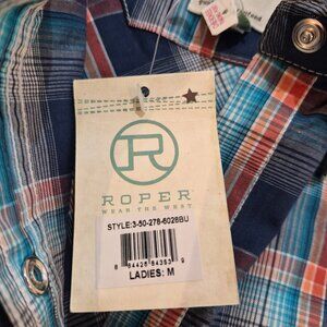 Roper Womens Plaid Country Western Snap Shirt Blue Cotton Long Sleeve SZ Medium