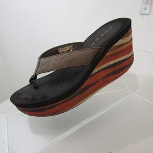 Roper Womens Thong Wedge Sandals Size 6 Flip Flops Multicolored Striped Earthy