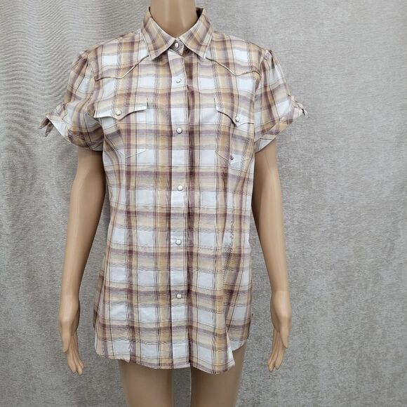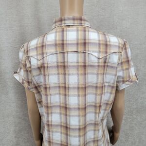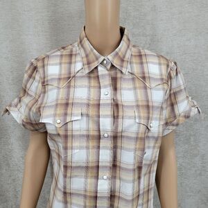 Roper Y2K Plaid Pearl Snap Western Shirt Button Up Women's Top Short Sleeves