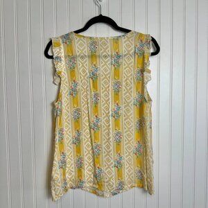 Roper Yellow Floral Sleeveless V-Neck Top Size Medium Bust 19" across Length 24" In good condition from non smoking home
