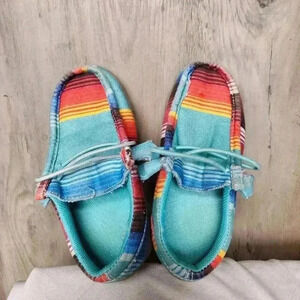 Roper Youth Blue Aztec 'CHILLIN SERAPE' SLIP-ON MOCCASINS SHOES Size 10