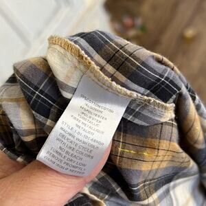 Roper mens size medium plaid pearl snap shirt in great condition. Black, gray, beige and a tiny bit of gold thread. Measures 22” from armpit to armpit and 29” long.