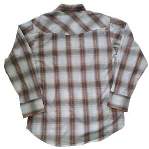 Roper sustainable cotton gray orange tangerine silver plaid Western shirt XL