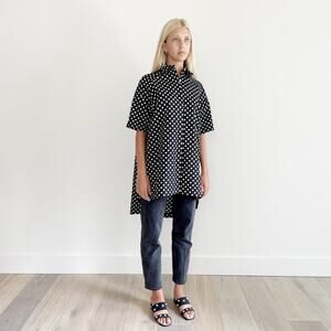 The Rororiri Alcor Oversized Button Down Shirt in black and white stars is a stylish and trendy top for women in size 6. The oversized fit adds a casual and comfortable element to the classic button-up design, making it perfect for everyday wear. The black and white stars motif adds a touch of flair to the overall look, making it a versatile piece that can be dressed up or down for various occasions. Made of a soft and breathable down fabric, this shirt is both fashionable and comfortable for the modern woman.