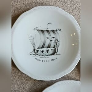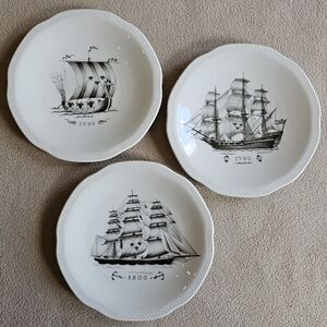 Rorstrand Sweden 8” Sverige Sailing Ship Viking Porcelain Plate Vtg Set Of 3