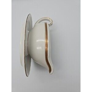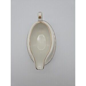 The Rorstrand Sweden Porcelain Gravy Boat with Plate is a fine china piece featuring elegant white and gold trim. This decorative serveware item is perfect for serving gravy or sauce in style during meals. Made in Sweden, this gravy boat adds a touch of sophistication to any dining table setting.