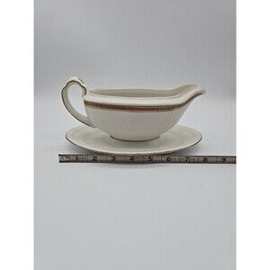Rorstrand Sweden Porcelain Gravy Boat w/plate Fine China White & Gold Trim #622