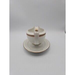 This is in exceptional condition. The gold trim has a reddish hue. Probably tarnish of some kind. Lip has a little gold wear from use. I have other pieces in this pattern.