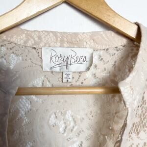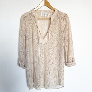 Rory Beca Lace Tunic Small Mini Dress Tan Tie Boho Festival Sheer Western