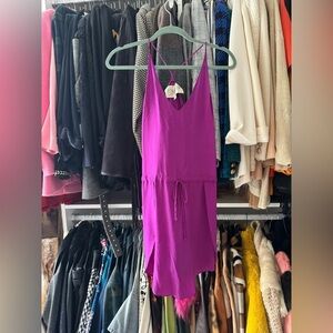 Light and airy, super comfortable 100% Silk Purple mini dress from Rory Beca. racer Back thin straps and drawstring waist. Great condition