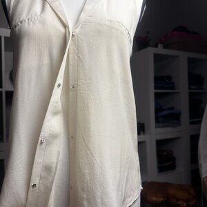 Rory Beca Silk Sleeveless Blouse Top Womens Size XS Beige Collared Silk fairy