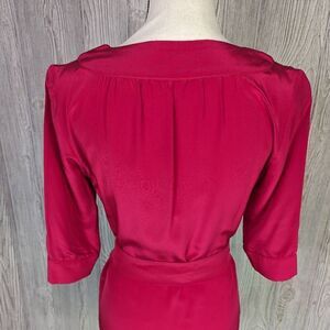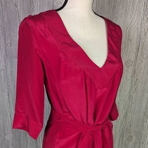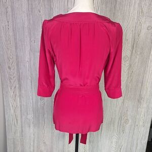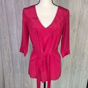 Rory Beca Silk V-Neck Blouse Tunic Waist Tie 3/4 Sleeve Pink Women’s XS