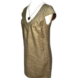 Beautifully made taupe(dark tan) & gold dress in a textured fabric