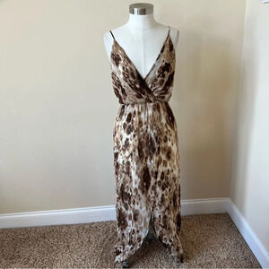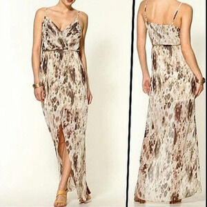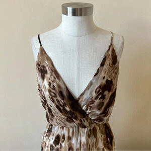 Gorgeous animal cheetah leopard print crossover front strappy asymmetrical slit front maxi dress.