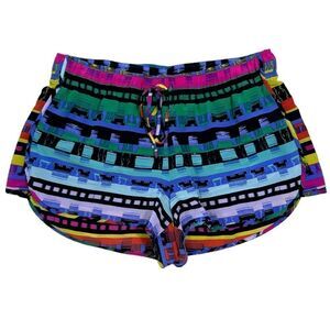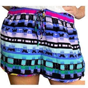 Rory Beca Purple Multi Color Eclectic Silk Drawstring Waist Shorts