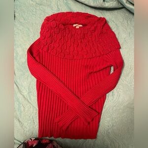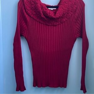 Ros & Ali Sweater women’s L Red Exaggerated Cowl Neck ChunkyKnit, long sleeve