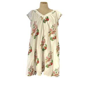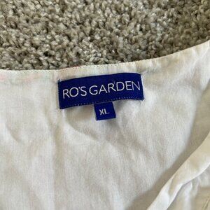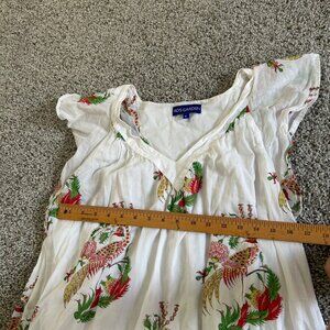 Ros Garden Womens XL White & Multicolor Peacock Print Dress With Flutter Sleeves