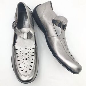 Ros Hommerson CAMEO Metallic Pewter Perforated Fisherman Loafer Sandals