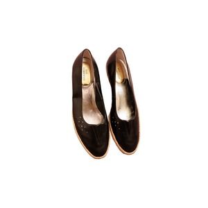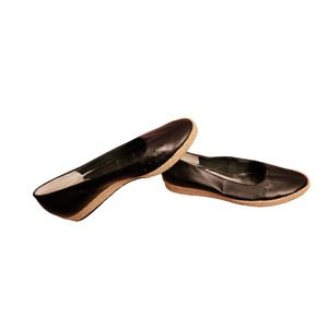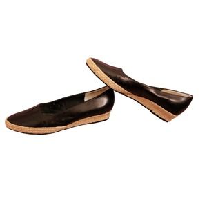 Ros Hommerson “Envy” Black Leather Low Wedge Espadrille Slip On Flats 8.5M