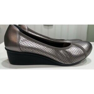 Ros Hommerson Evelyn Pewter Leather Comfort Wedge SlipOn Shoes Womens Size 8.5SS