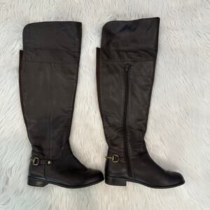 Ros Hommerson Over The Knee High Leather Boot Horsebit Flat Riding Boots, Brown